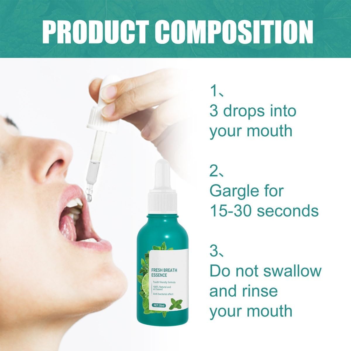 Lasting Work—-You only need to use 1-3 drops of oral care essence and 15 milliliters of water each time, lasting for 8 hours, after use will not leave bad taste in the mouth, keep your breath fresh for a long time.