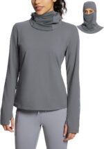 BALEAF Thermal Long Sleeve Women Shirts Winter Clothes Cowl Neck Warm Fleece Base Layer Tops with Balaclava and Thumbholes