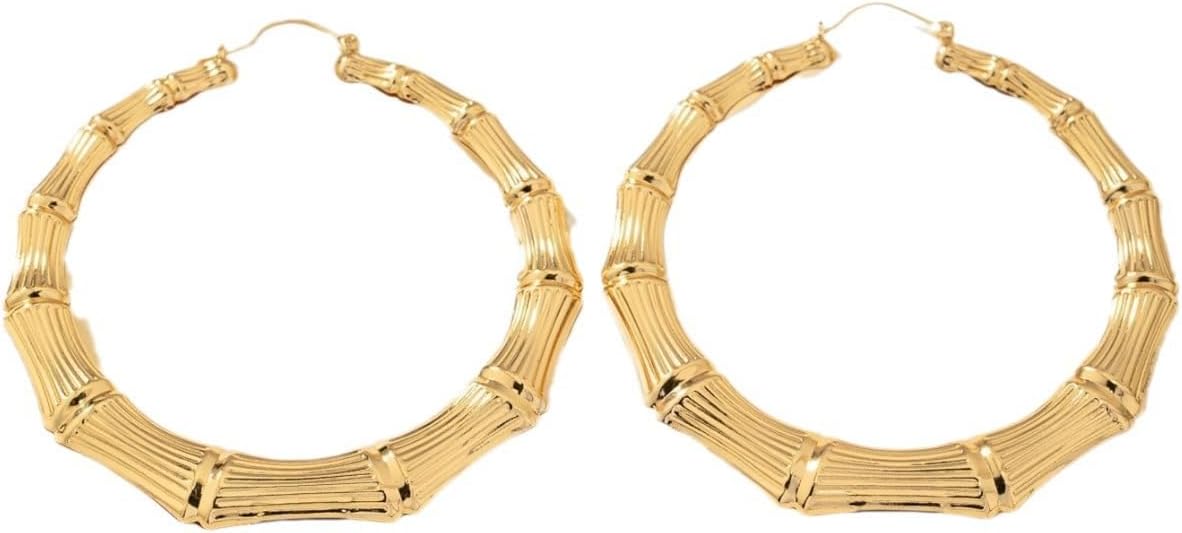 Bamboo Earrings for Women Gold Bamboo Hoop Earring Large Bamboo Hoop Earrings 90s Large Gold Hoop Earrings Trendy Leopard Bamboo Earrings Hip Hop Jewelry for Women