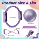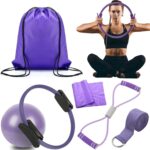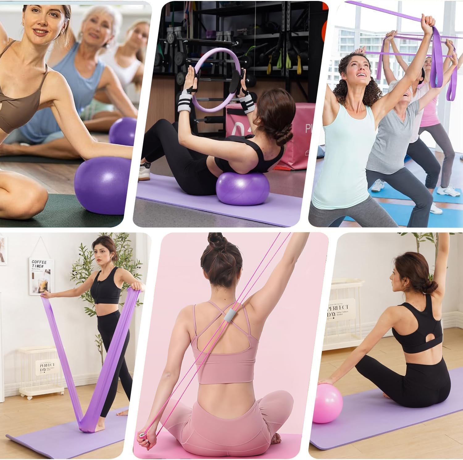 6 Piece Set: Includes pilates ring, 8 shape Resistance Belt, exercise ball, stretching strap, carry bag,150cm elastic band for full-body workouts