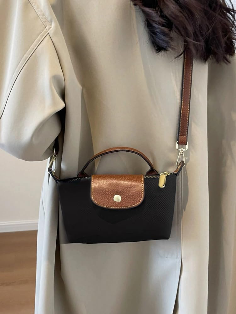 BananaHome Women Mini Shoulder Tote Bag, Stylish Waterproof Nylon Top-Handle Chain Strap Purse, Zipper Foldable Crossbody Handbag with strap for Work,Shopping,Travel