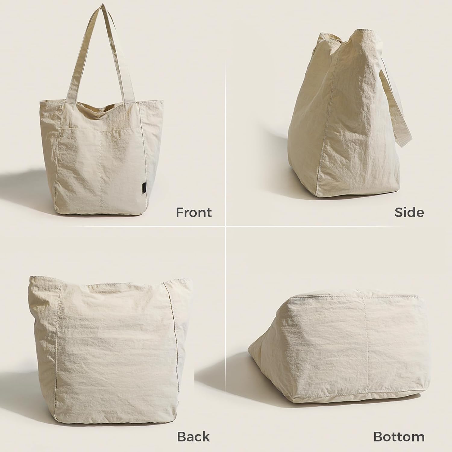 Barsine Tote Bag for Women Unisex Lightweight Nylon Totes Purses and Handbags Large Casual Shoulder Hobo for Travel Gym Material: Nylon + Polyester Closure: Zipper Pockets: 1 main compartment, 1 internal zipper pocket, 2 internal slip pockets, 2 external slip pockets Color: Black, White Features: 1.High quality nylon, lightweight and durable, soft and comfortable. 2.Classic and simple design, suitable for many occasions. 3.Can hold daily items such as tablet, water bottle, umbrella, wallet and so on. 4.Contains adjustable shoulder strap, can be used as a shoulder bag, handbag. 5.Can be used for travel, shopping, college, work, dating, vacation, gym and other occasions