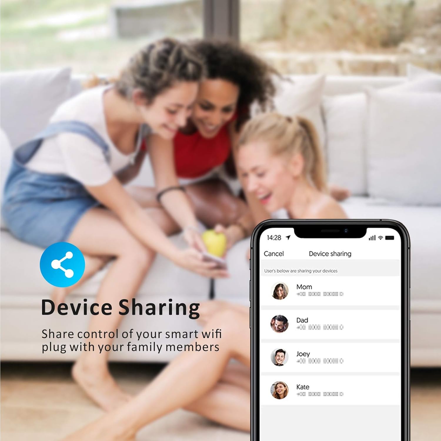 You are able to share the smart wifi plug with your family by sharing the device. The 2 nice wifi plugs make you and your family relationships even more intimate and happier.Your family also can set some schedule according to their daily routine.