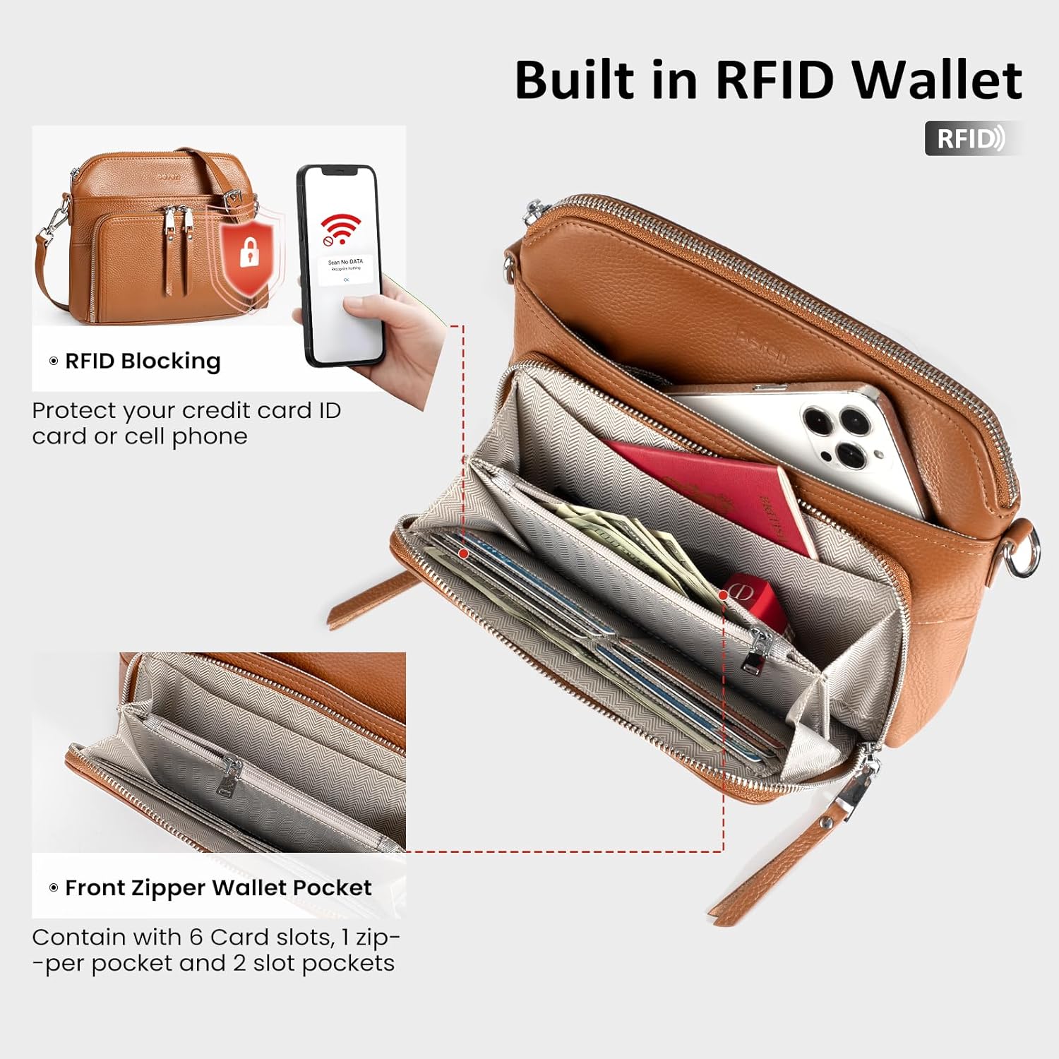 Are you looking for a perfect size crossover purse? This befen crossbody bag easily meets your needs,it’s not too big or too small,the front built in wallet is very convenient, you don’t need take another separate wallet, just carry this crossbody purse is enought to meet daily and travel needs, it’s small enough where you can just grab and go and have all your essentials. The built in wallet pocket has plenty of space for cards, cash pocket, checks and a pen,and it is a RFID wallet,it will protect your ID card, bank card, or cell phone from being scanned. It has an outside button pocket that is perfect to quickly access your cell phone. The main pocket fits glasses, makeup, ipadmini and other small items including an inner zipper pocket and a slot pocket for organize passport or keys. It has an outside zipper pocket in the back to store personal items such as airline tickets or ID cards.This crossbody purse made from genuine leather real leather crossbody bag, it is more durable and long-lasting, scratch-resistant, soft and supple to the touch, This leather purse comes with high quality silver metal hardware and silver color smooth zipper,will be more versatile and durable.We have a variety of colors for you to choose from, brown, navy blue, navy, beige grey, white, black, removable and adjustable leather crossbody belt,whether you’re dressing up or keeping it casual for a day ,it pairs effortlessly with a variety of outfits. It can be used for work, traveling, commuting, going out, shopping, dating, night out, work, gathering, wedding and other scenarios, when you don’t want to carry too much stuff. Suitable for spring, summer, autumn and winter. Fits Most Big Screen Smartphone: Apple iPhone 15 Pro Max, 14 Pro Max, 14 Pro, iPhone 13 Pro, 12 Pro, 11 Pro, Samsung Galaxy S23 Ultra, S22 Ultra, S21 ultra, Google Pixel 7a, 16 Pro Max, Google Pixel 9 Pro, S24 Ultra, OnePlus 12R, Google Pixel 8a fall purses for women 2024