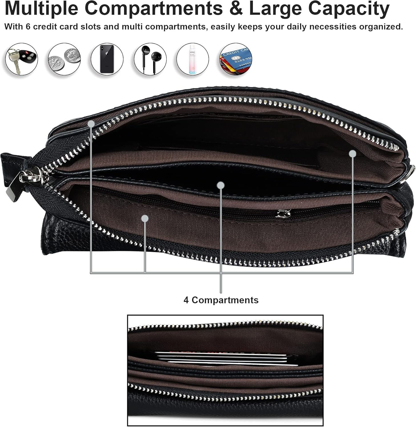 befen Genuine Leather Phone Bag, Crossbody Cellphone Purse Wallet, Small Cross Body Phone Bag for Women Mini Shoulder Bags with Long Strap and Key Ring – Fit 8 Plus or Phone Less 6.5 Inch