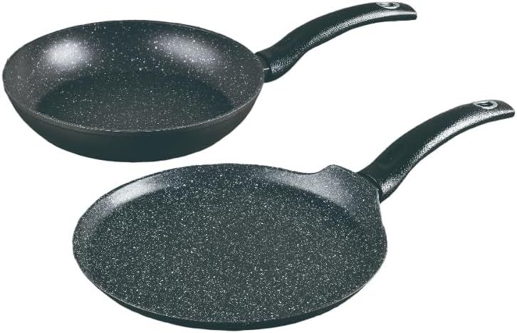 MULTI-FUNCTIONAL SET FOR ALL FAMILY: 1PC FRYPAN Ø26CM & 1PC TAWA Ø28CM. Made of high-quality forged aluminum, elegant and stylish. Superior durability and anti-rust performance, not easy to deform. All our pots and pans have gone through strict checks before shipping out.