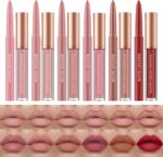 12Pcs Matte Liquid Lipstick + Lip Liner Pens Set, One Step Lips Makeup Kits Pigment Velvety Nude Lip Stain Waterproof Long Wear Lip Gloss Make up Gift Set