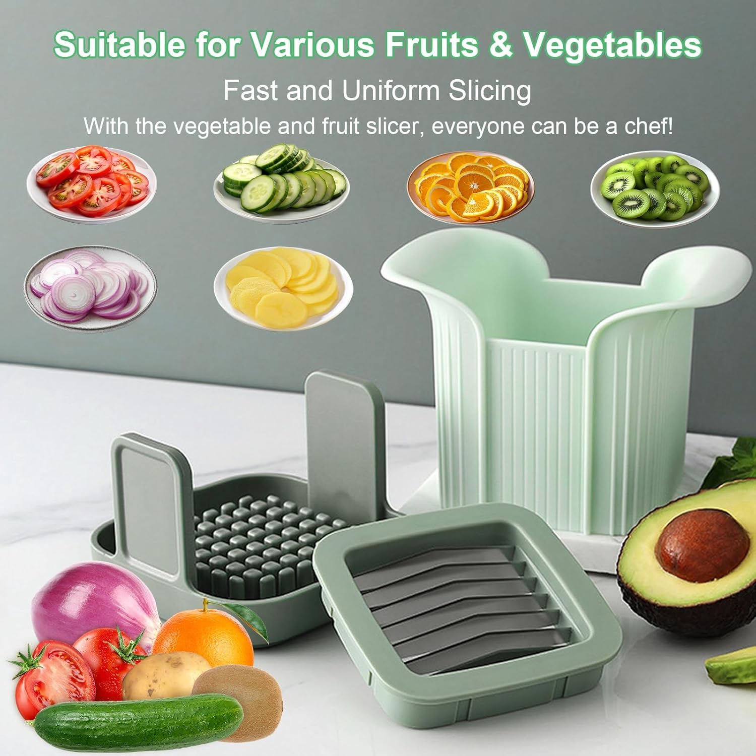 Diverse Cutting Functions: This multifunctional vegetable cutter is a kitchen all-in-one. It can dice potatoes, cut cucumbers into strips, and slice avocados with ease. Whether you need cubes, strips, or slices for your salads, stir-fries, or sandwiches, this tool has got you covered, saving you the hassle of using multiple utensils.