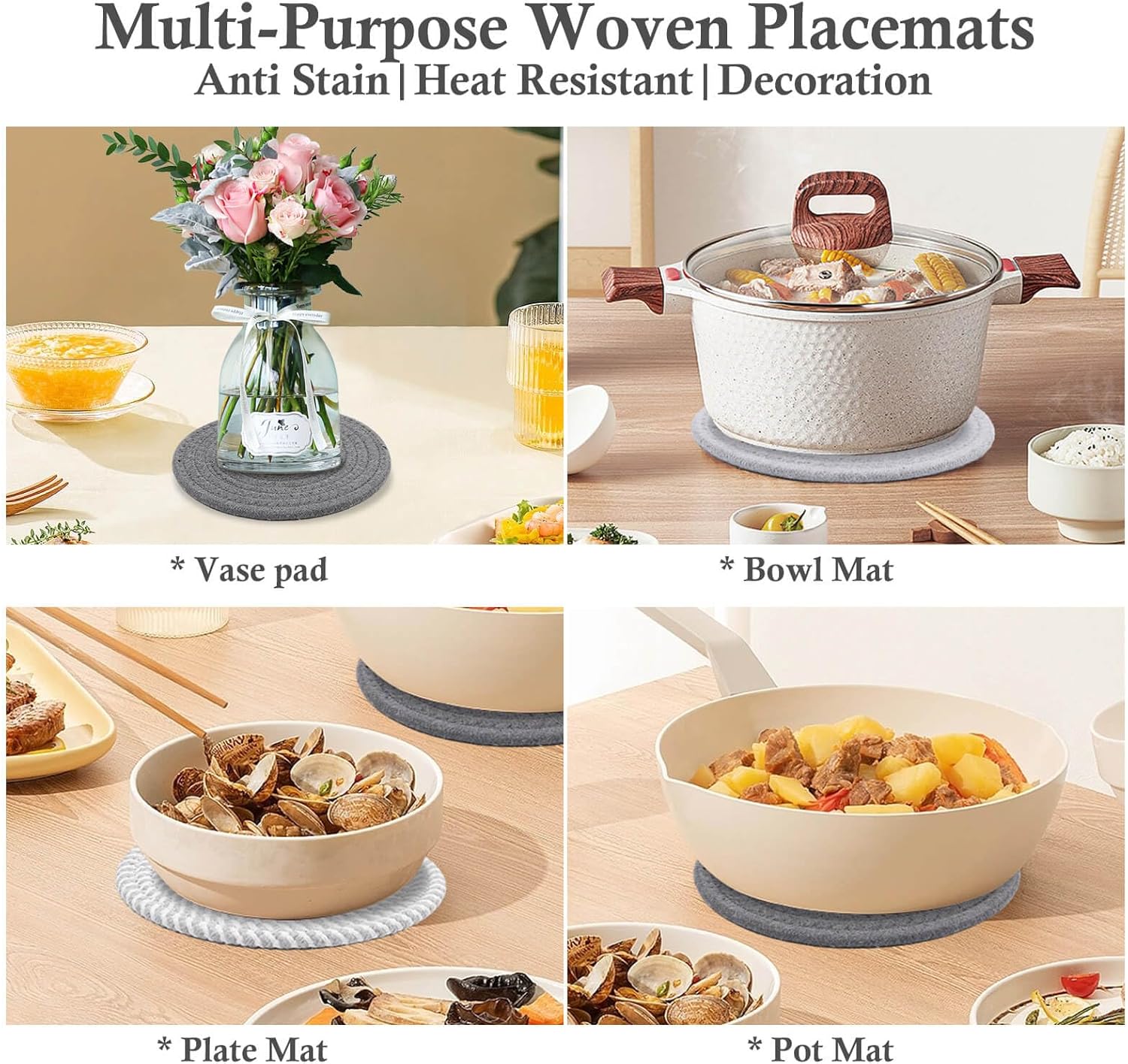 Heat Resistant – Our pot holders are thickened to withstand temperatures up to 356°F. They can be placed under hot dishes, hot pots and pans as protection and decoration, which can effectively blocks heat sources, scratches and stains, perfectly protecting the tabletop and extending the life of the table.