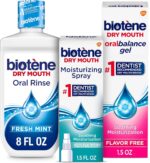 Biotene dry mouth oral rinse and oral spray provide up to four hours of relief from dry mouth symptoms