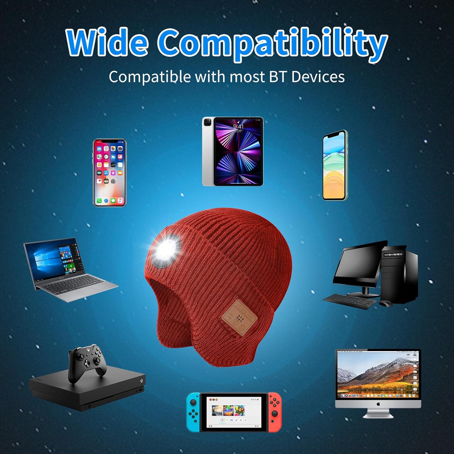 Bluetooth Beanie Hat with Light and Headphones, Built-in Microphone and Stereo Speakers Upgrade Music Knitted Hat
