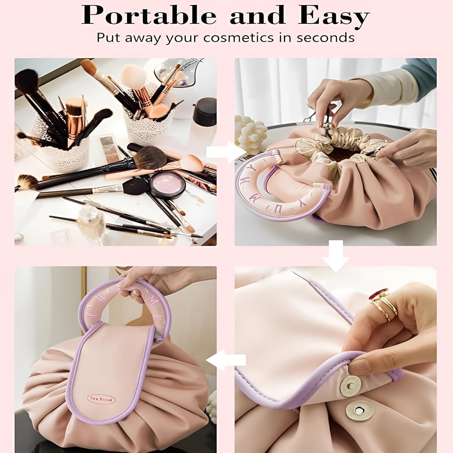 🧵【Adjustable Double Drawstrings】 – Features two durable drawstrings that allow you to securely tighten or loosen the opening, providing easy access to your makeup while keeping everything neatly organized inside.