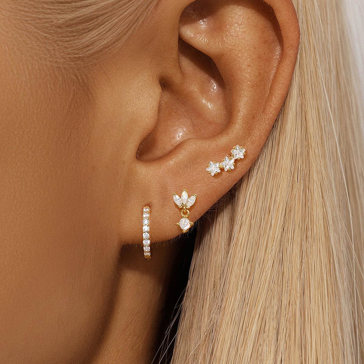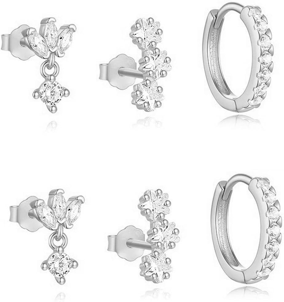 Earring Sets for Multiple Piercings: You will receive 3 pairs of silver earrings in different elegant styles.