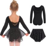 Boolygo Girls Ballet Leotards Toddler Long Sleeve Crisscross Back Dance Dress Outfit with Removable Shiny Skirt Combo