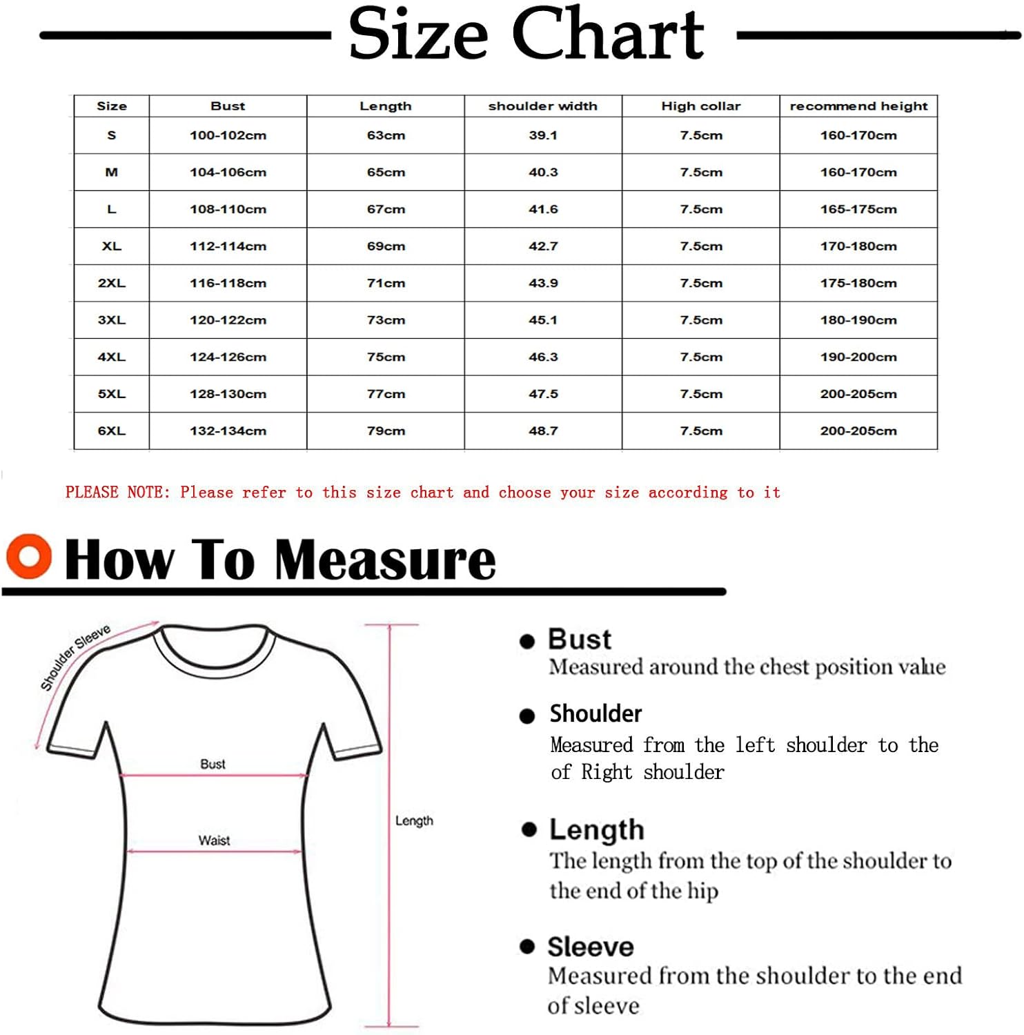 Size: 4X-Large US: 16 UK: 20 EU: 46 Bust: 124-126cm Shoulder: 46.3cm/18.23” Length: 75cm/29.53”