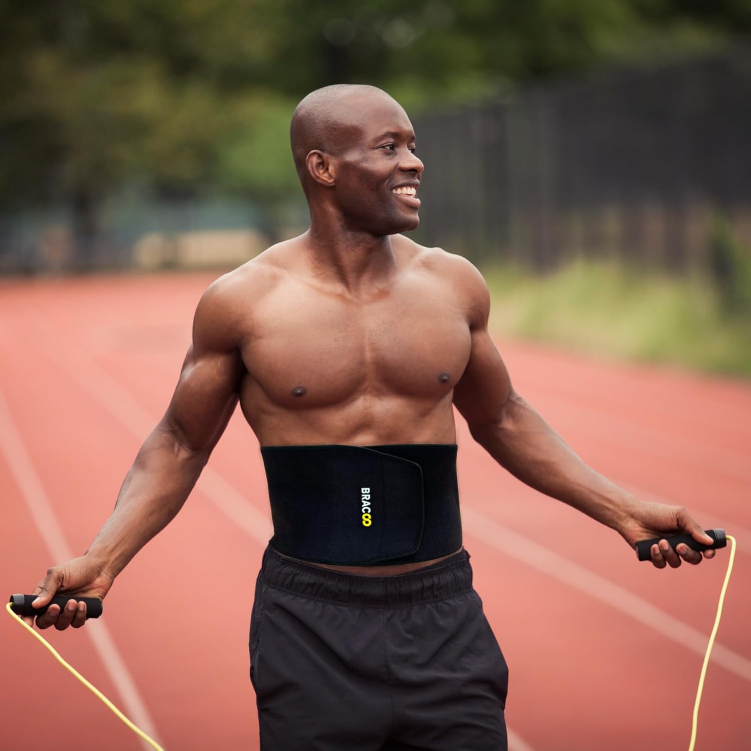 Bracoo Gym Waist Trainer Women Men, Fitness Waist Trimmer, Workout Exercise Sweat Belt, Body Shaper, Adjustable Neoprene Wrap for Weightlifting, Training, Cardio, SE22, Black