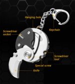 Folding Screwdriver,Multifunction Foldable Slit Screw Cutter,Compact Multi-tool Gadget Keychain for Camping, DIY Activities, Fishing Description: Blade material: 3CR13Handle material: 420 steel engineering plasticSize: Diameter 4.2 0.9CM in height (the highest point is 1.1CM)Expanded length: 6.5CMBlade length: 2.2CMBlade thickness: 2.0MMBlade width: 1.5CMScrewdriver: 6pcs (hidden on the back)Product use: outdoor sports, carry around, home daily use Package included: 1x Foldable Slit Screw Cutter Note: Due to the different monitor and light effect,the actual color maybe a slight different from the picture color.Please allow 1-2cm differs due to manual measurement. Future: The unique design of foldable coin cutter shape, perfect for dailylife.Convenient to use, easy to fold and unfold. There are several mini screws for different use.Suitable for outdoor sports, carry around, home daily use. The multi-Tool set features a folding design, which is super compact and easy to be carried around, preventing loss of small screwdrivers. Compact size makes the folding pliers a best partner for any outdoor activity including hiking, camping, fishing, survival.