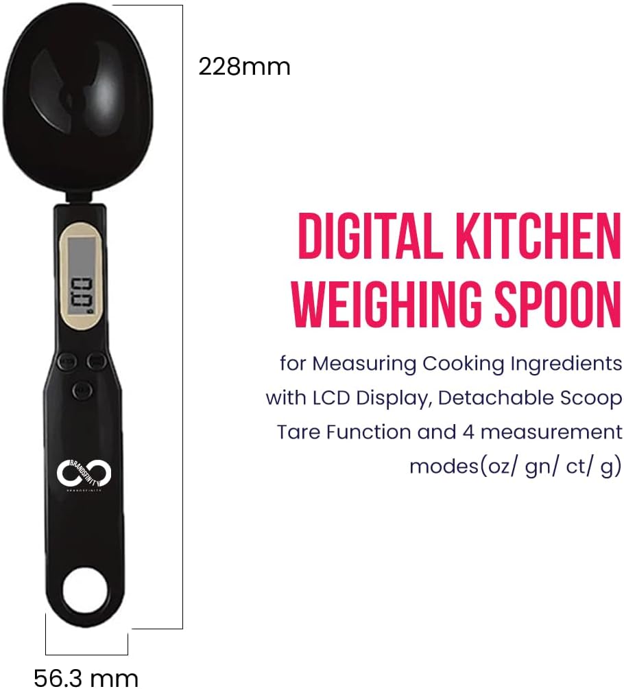 BRANDSFINITY Digital Spoon Scale Precision Measuring Tool for Kitchen and Lab Use, Small Food Scale for Kitchen & Multiple Use, Black