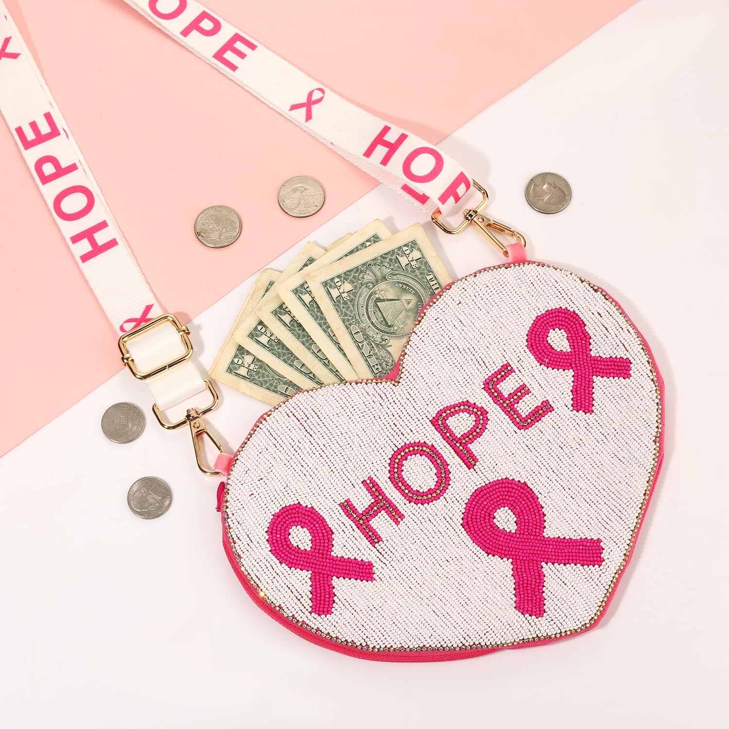 Breast Cancer Awareness Purse for Women Beaded Pink Ribbon Crossbody Shoulder Bag Breast Cancer Awareness Accessories Gifts