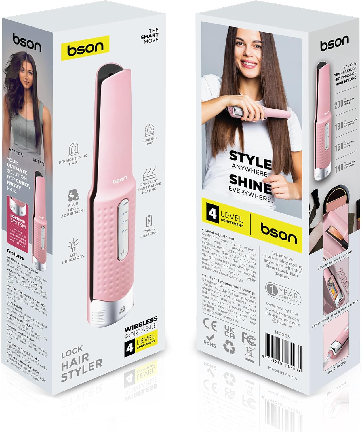 2-in-1 Hair Styler: Bson Lock Hair Styler offers both straightening and curling functions in one compact tool. Ideal for all hair types, this cordless hair straightener and curler lets you style anytime. Enjoy smooth results at home or on-the-go. Perfect for women looking for a reliable hair curler and hair styling tool.