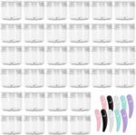 BTYMS 100 Packs Small Cosmetic Containers with Lids 20 Gram and 10 Pcs Makeup Spatula Clear Traveling Jars Sample Jars for Beauty Products