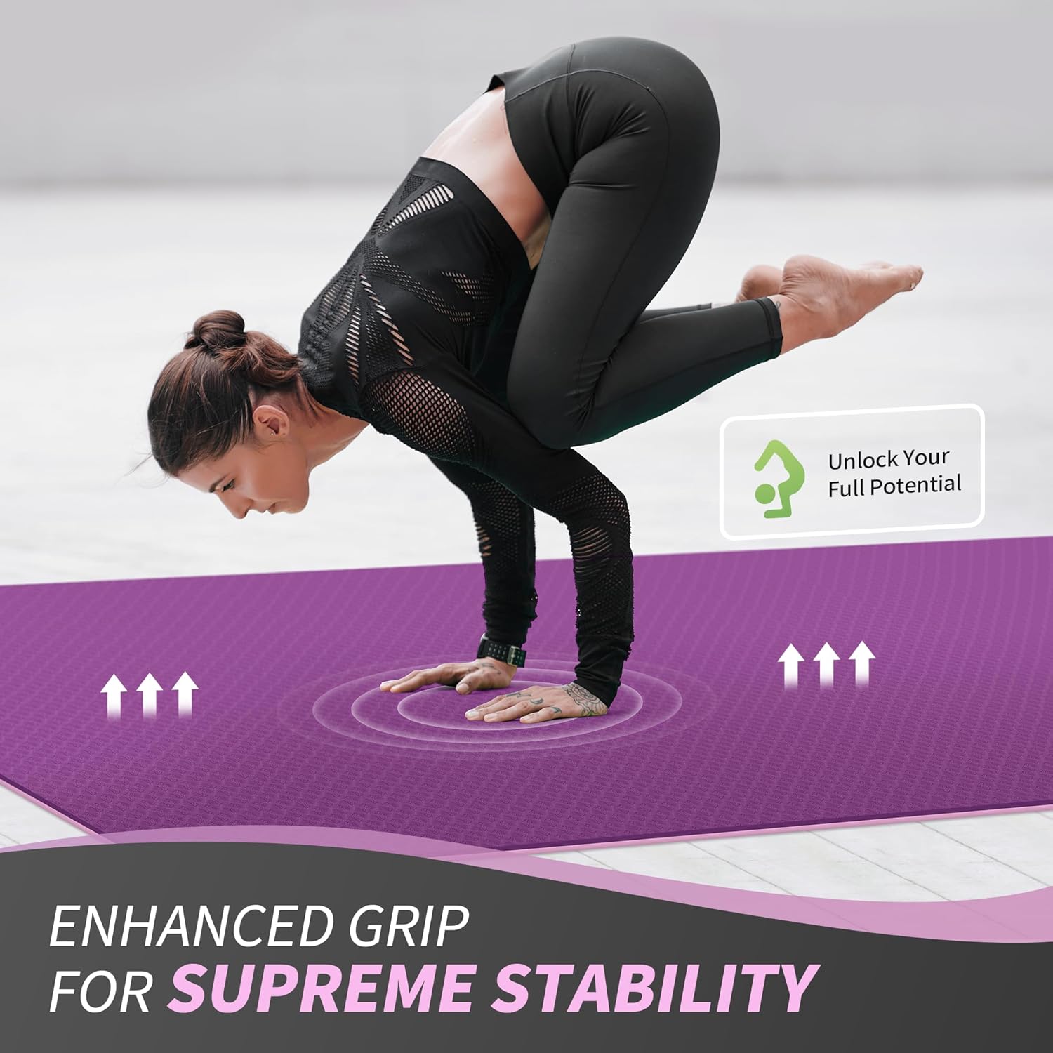 Grippy Not Slippy: Our Yoga Mat using a Two-toned Textured non-slip design so you can perform any movement with confidence; Wavy underside stops the mat from sliding on the floor; The laser graved surface prevents hands and feet from slipping out of position so you can hold poses no matter how vigorous your practice gets and whether you¡¯re practicing on a wood floor, or tile ( Not recommended for use on a rug)