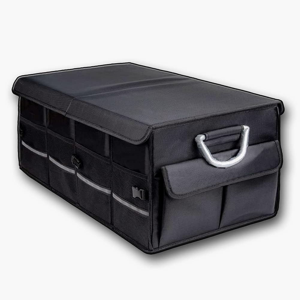 Mouruer premium trunk storage organizer is reinforced with rigid base plates to support every side panel. The multiple compartments, several pockets and the flexible lids will help you out from mess.