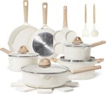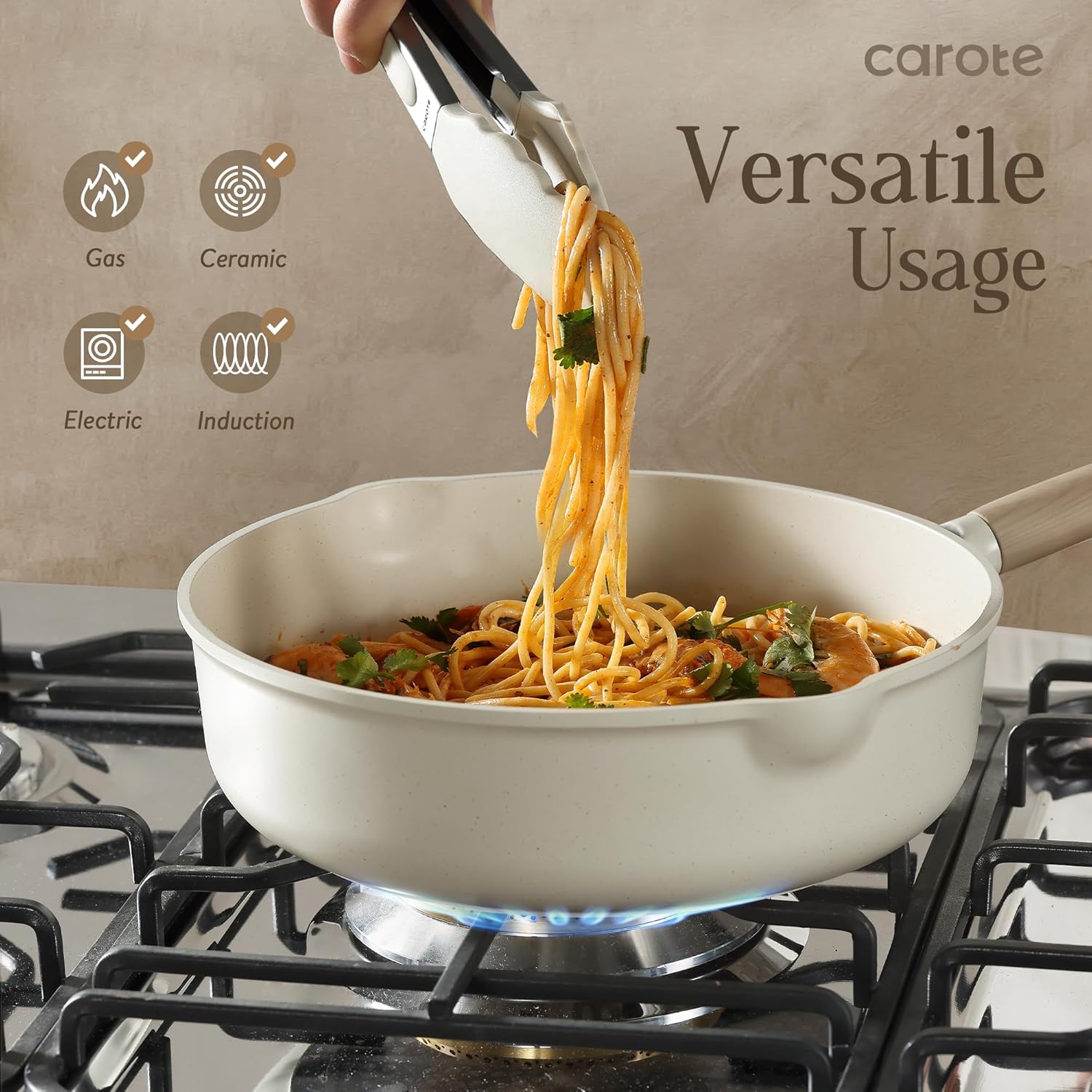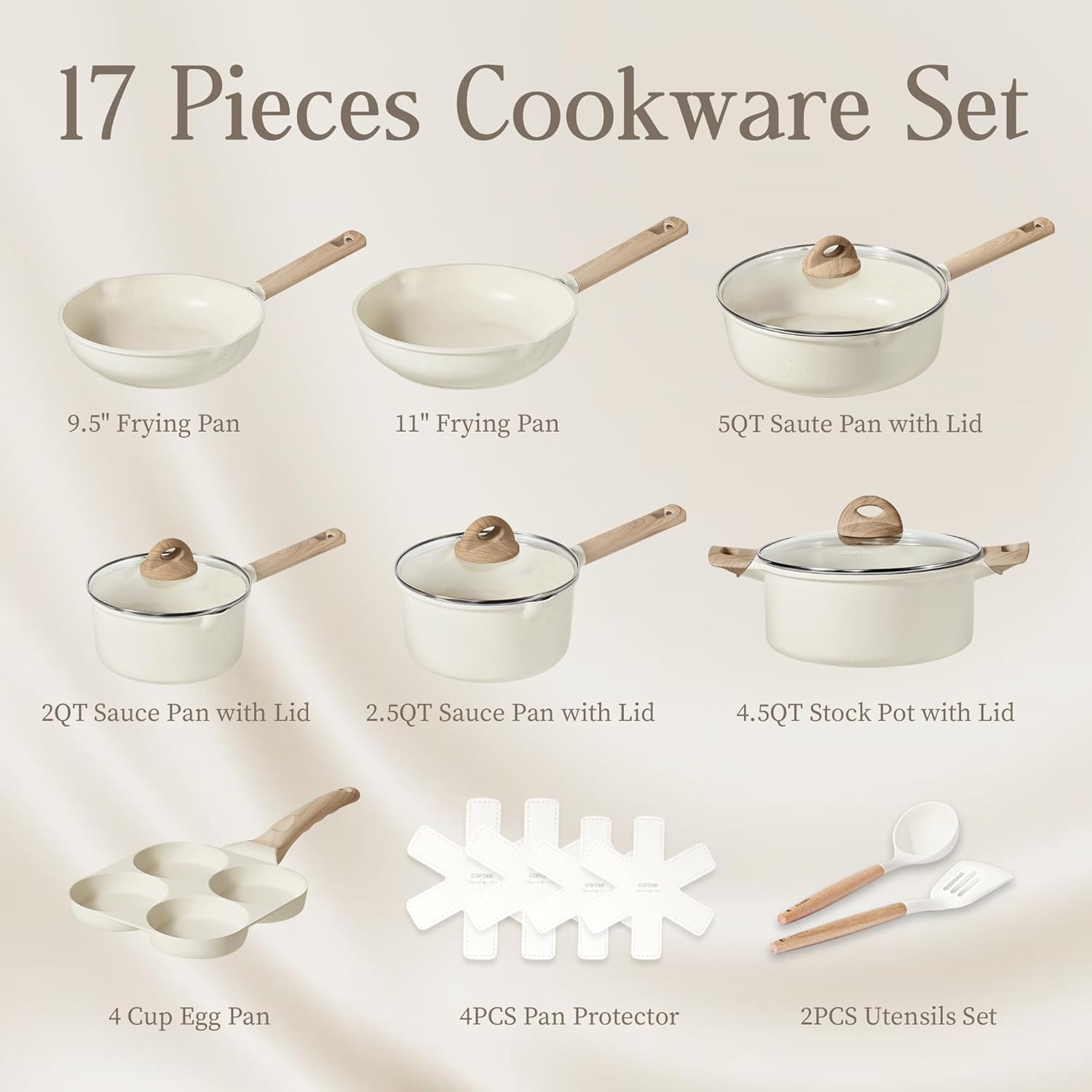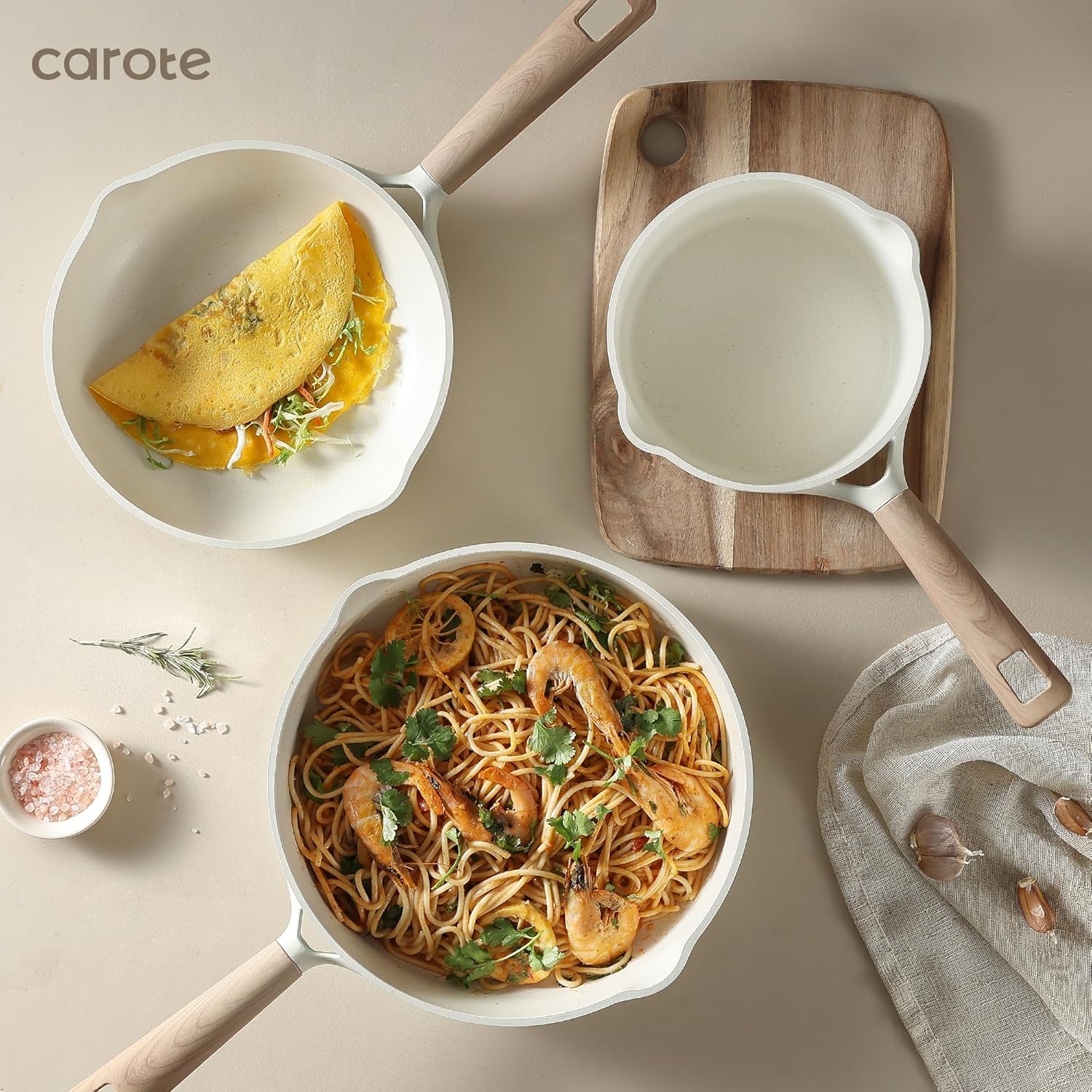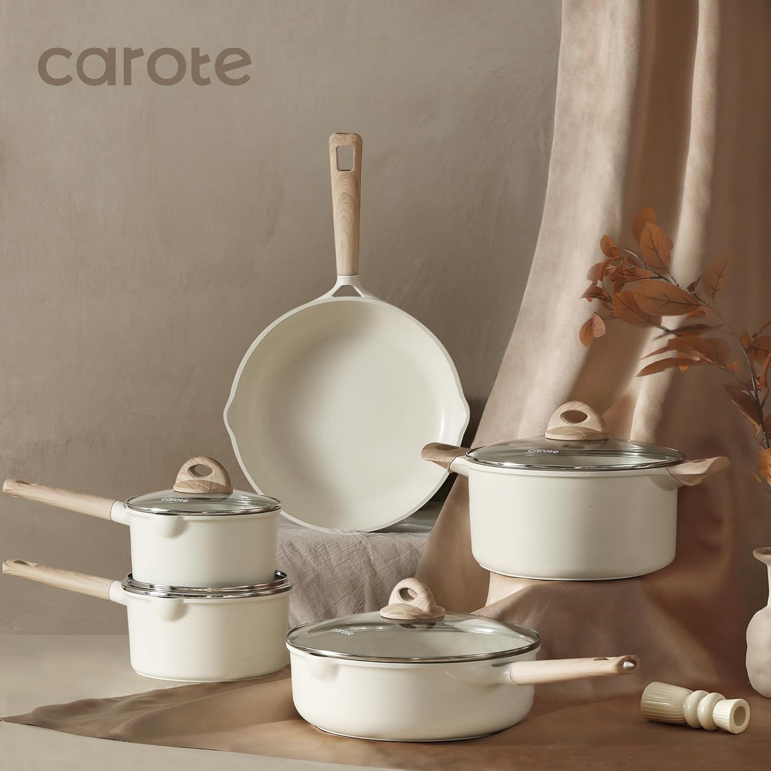 CAROTE 17 Pcs Pot and Pan Set, Non-Stick Kitchen Cookware Set, Easy to Clean Kitchen Pot and Pan, Pot and Pan Set for Cooking, Cream