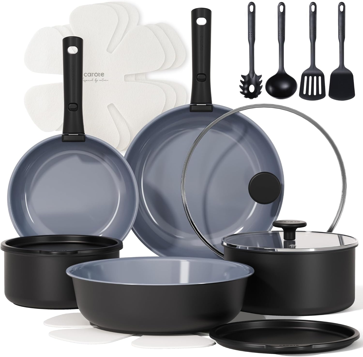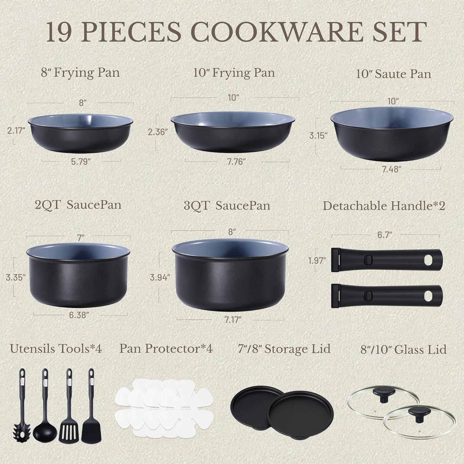 CAROTE Ceramic Cookware Sets, Pots and Pans Set Non Stick Non Toxic, Induction Cookware, Kitchen Cookware Sets, Pots Set for Healthy Coooking 19PCS