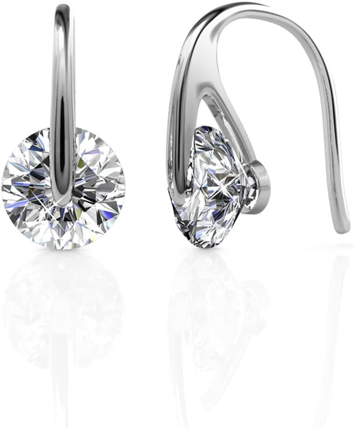 Cate & Chloe McKayla 18k White Gold Plated Dangling Earrings with Crystal, Classic Drop Dangle-Earrings, Best Silver Earrings for Women, Small Solitaire Hook Drop Earrings with