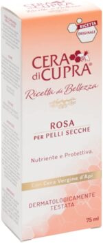 Cera di Cupra ROSA FOR DRY SKIN Nourishing anti-age treatment enriched with Virgin Beeswax and precious protective nourishing components which provides to the dry skin nourishment and protection from external agents. When daily used helps prevent the ravages of time giving the pleasant sensation of comfort and smoothness, assuring day after day the unique anti-age effect. Dermatologically tested. Available Size: 75 ml tube