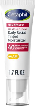 CETAPHIL REDNESS RELIEVING DAILY FACIAL MOISTURIZER SPF 40: Specially formulated for redness-prone skin, this neutral-tinted moisturizer neutralizes the appearance of redness, evens skin tone and hydrates the natural protective skin barrier, leaving it soothed and balanced