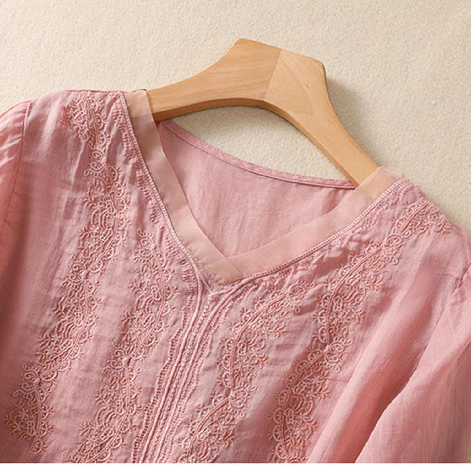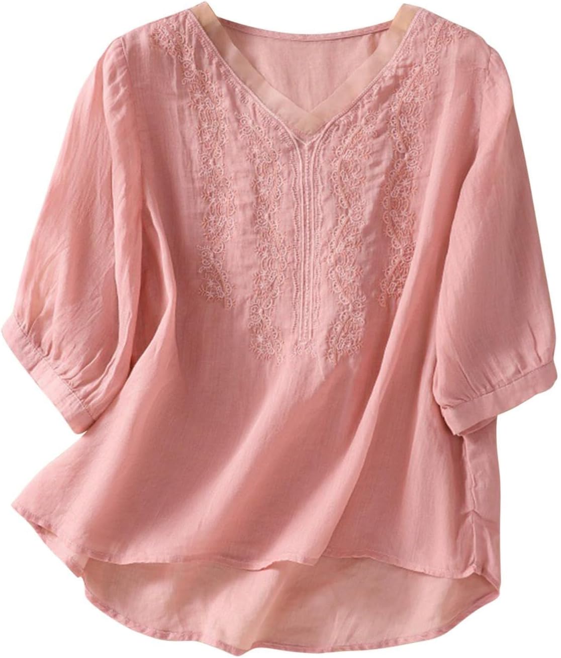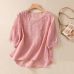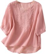 CheJooe Women’s Summer Linen Blouses Casual Vintage Boho Short Sleeve V Neck Comfy Shirts Tops