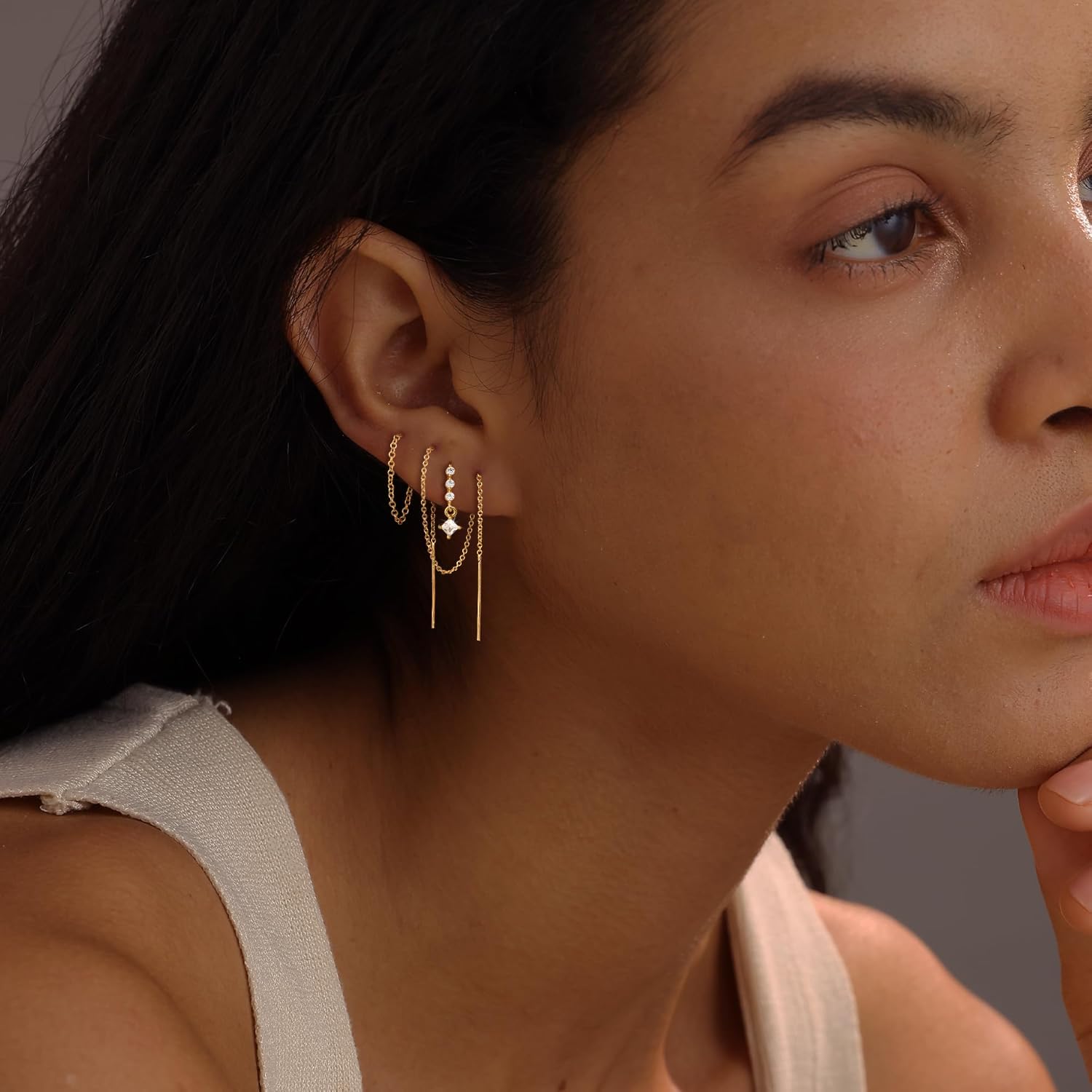 CHESKY Dangle Earrings for Women Trendy, Dainty 14K Gold Plated Chain Earrings for Womens Simple Threader Earrings Non Tarnish Hypoallergenic Long Drop Earrings Jewelry Set for Women Gifts