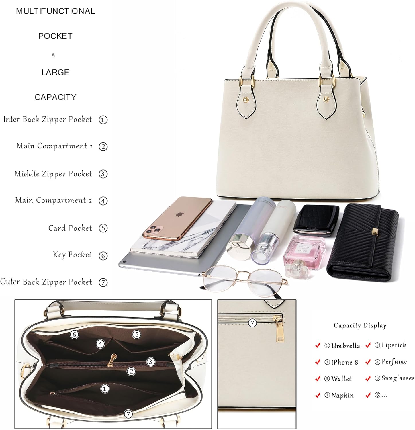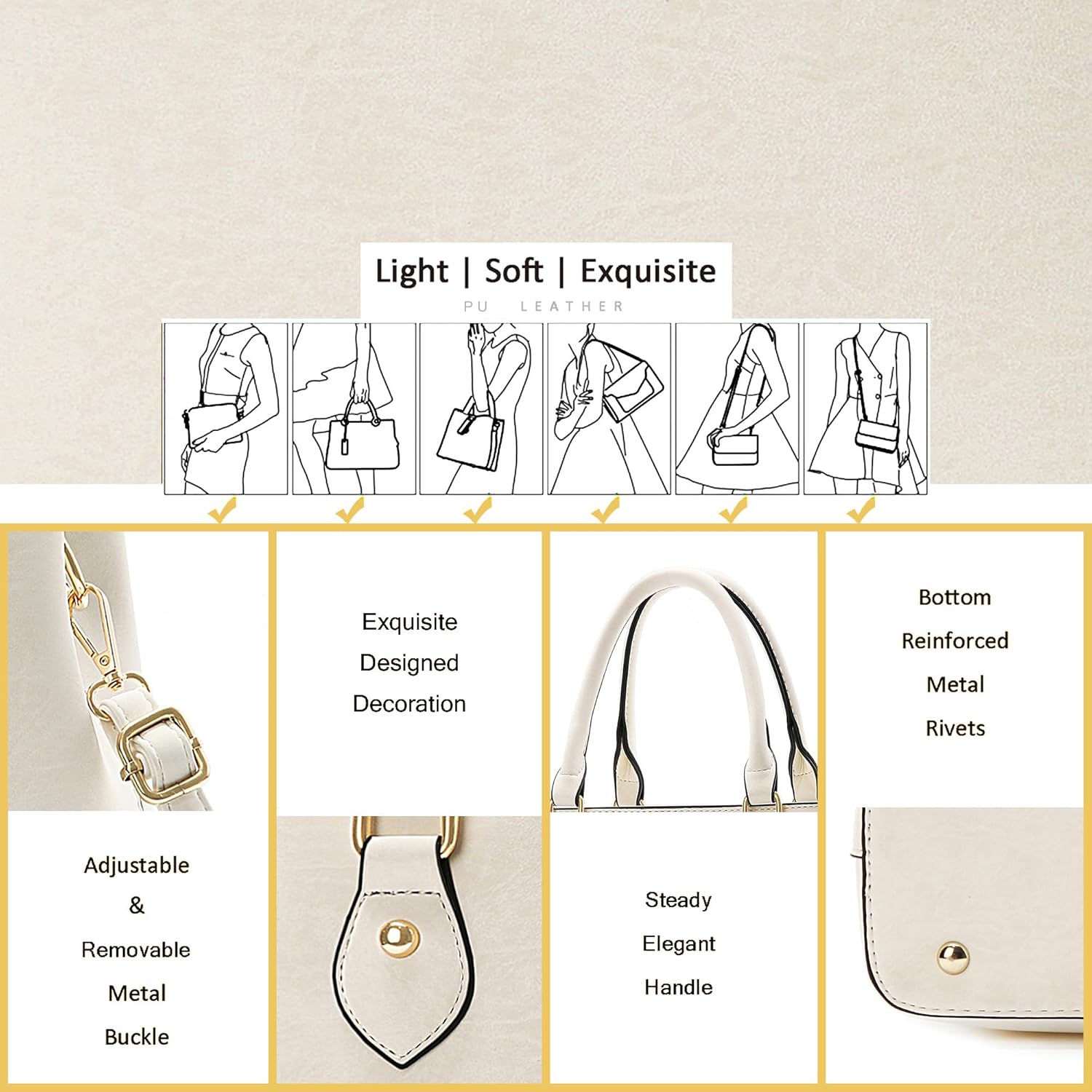 【PERFECT GIFT】With fashion design and great quality, this handbag will be the perfect gift for your wife, mom, girls, and family. Rich and beautiful colors for you to choose, classical black, cute pink, stylish pale blue, cool navy blue, normal brown, beautiful khaki, charming purple, hot red, adorable yellow. What are you waiting for 【FUNCTIONAL】The purse can hold your iPad, wallet, makeups, phone, little water bottle, perfumes, gloves and other your everyday items and keep them organized . Perfect for dating,shopping,working,traveling, vocation, party and other occasions 【WELL MADE】 Well made of high quality synthetic leather (no any animal part at all) with durable gold hardware. Detailed stitching with smoothly zippers. Notes —- Open it and put it in a ventilated environment for few days if it have PU smell. 【DETAILS】Top Handle Tote Bag: 12″L x 5.2″D x 9″H, Handle Height: 5.2″D , Handbag weight: 1.5lb. This purse has a long adjustable and removable strap to be a crossbody bag or shoulder bag.Top zipper closure. Two interior compartments,interior two zippered pocket and two slip pockets,exterior back pockets 【NOTE】We are committed to providing each customer with the highest standard of customer service and top quality goods, if you are not satisfied with our product or service for any reason, we will help you to solve problem within 1 workday. Have a beautiful day!