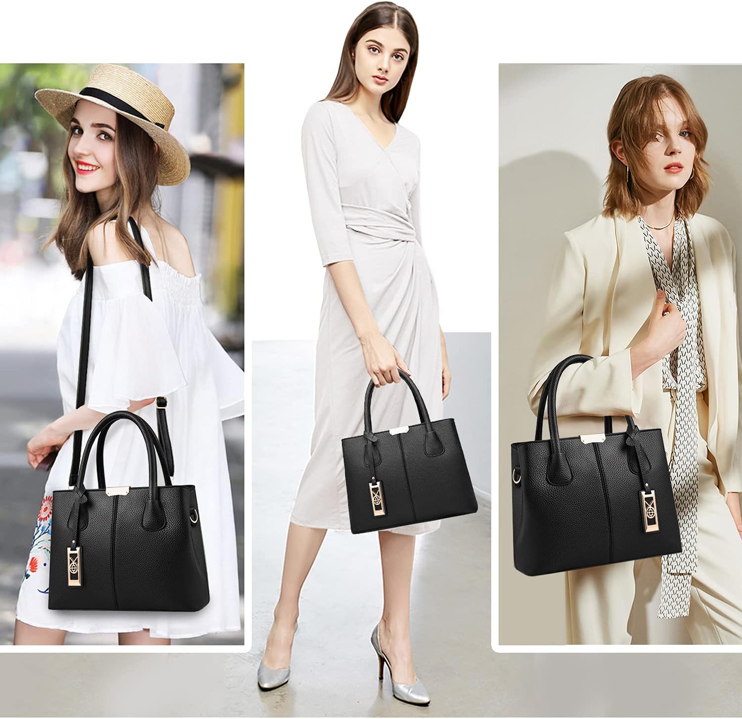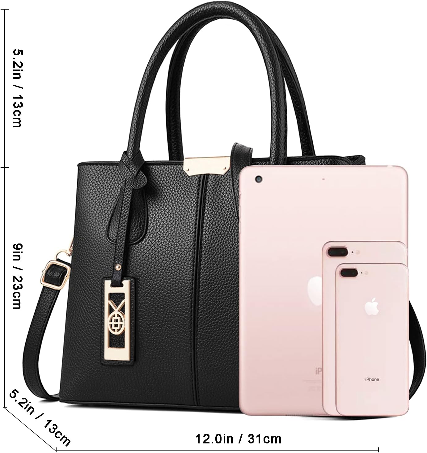 【PERFECT GIFT】With fashion design and great quality, this handbag will be the perfect gift for your wife, mom, girls, and family. Rich and beautiful colors for you to choose, classical black, cute pink, stylish pale blue, cool navy blue, normal brown, beautiful khaki, charming purple, hot red, adorable yellow. What are you waiting for 【FUNCTIONAL】The purse can hold your iPad, wallet, makeups, phone, little water bottle, perfumes, gloves and other your everyday items and keep them organized . Perfect for dating,shopping,working,traveling, vocation, party and other occasions 【WELL MADE】 Well made of high quality synthetic leather (no any animal part at all) with durable gold hardware. Detailed stitching with smoothly zippers. Notes —- Open it and put it in a ventilated environment for few days if it have PU smell. 【DETAILS】Top Handle Tote Bag: 12″L x 5.2″D x 9″H, Handle Height: 5.2″D , Handbag weight: 1.5lb. This purse has a long adjustable and removable strap to be a crossbody bag or shoulder bag.Top zipper closure. Two interior compartments,interior two zippered pocket and two slip pockets,exterior back pockets 【NOTE】We are committed to providing each customer with the highest standard of customer service and top quality goods, if you are not satisfied with our product or service for any reason, we will help you to solve problem within 1 workday. Have a beautiful day!
