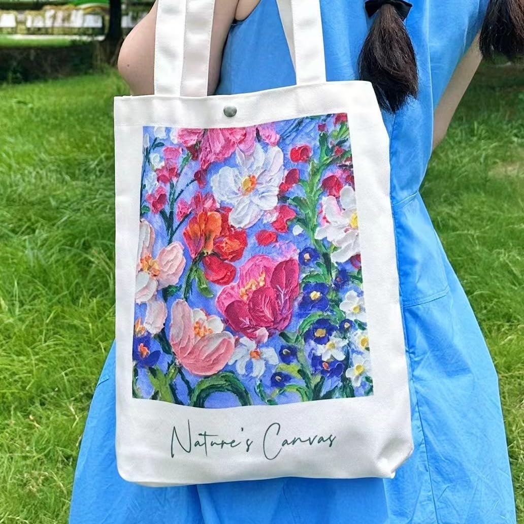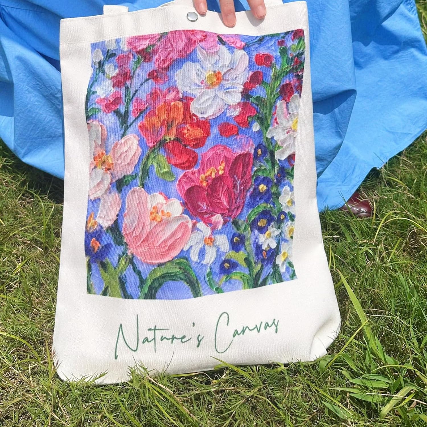This tote bag is made of high-qualitycanvas material. It is soft, lightweight, and can be reused.