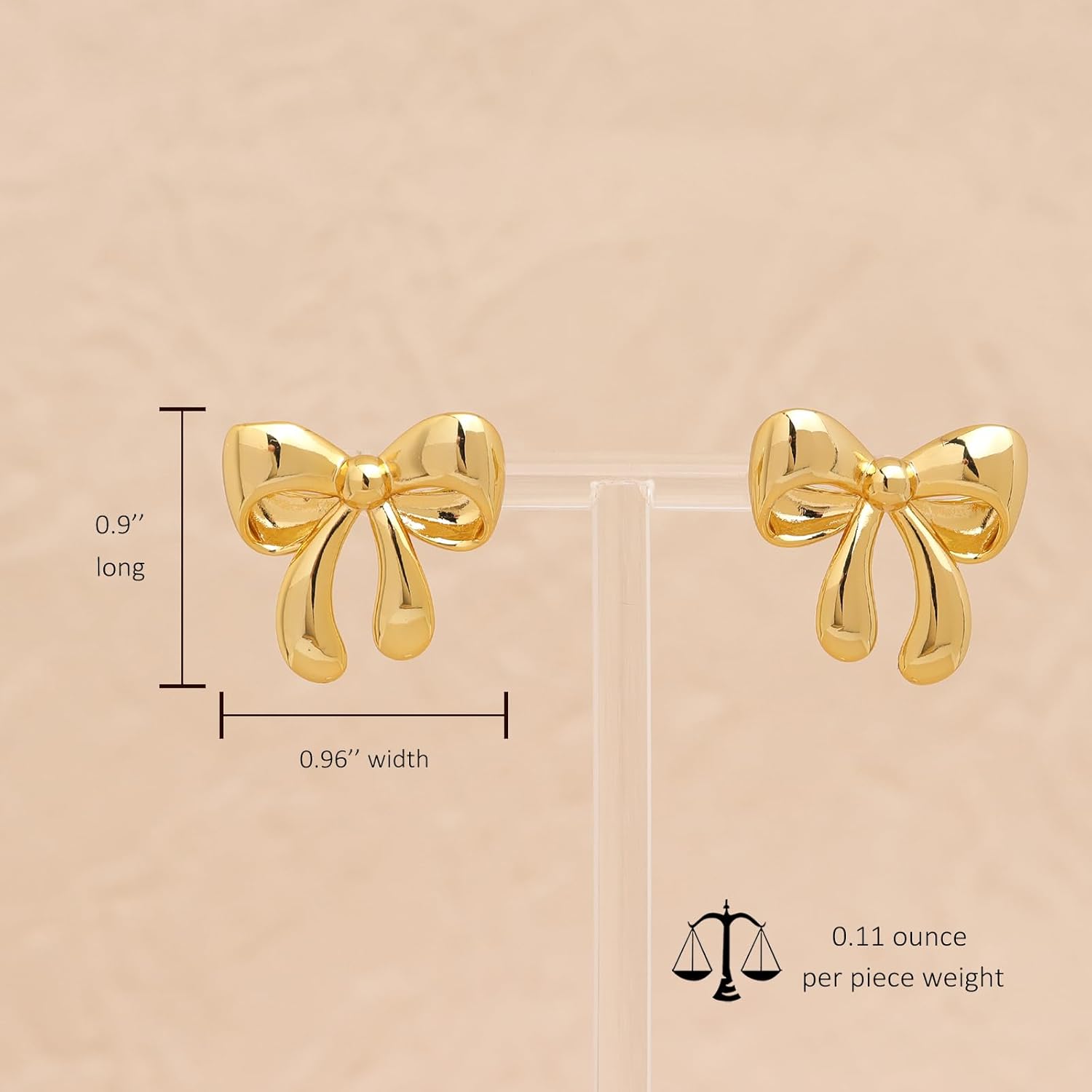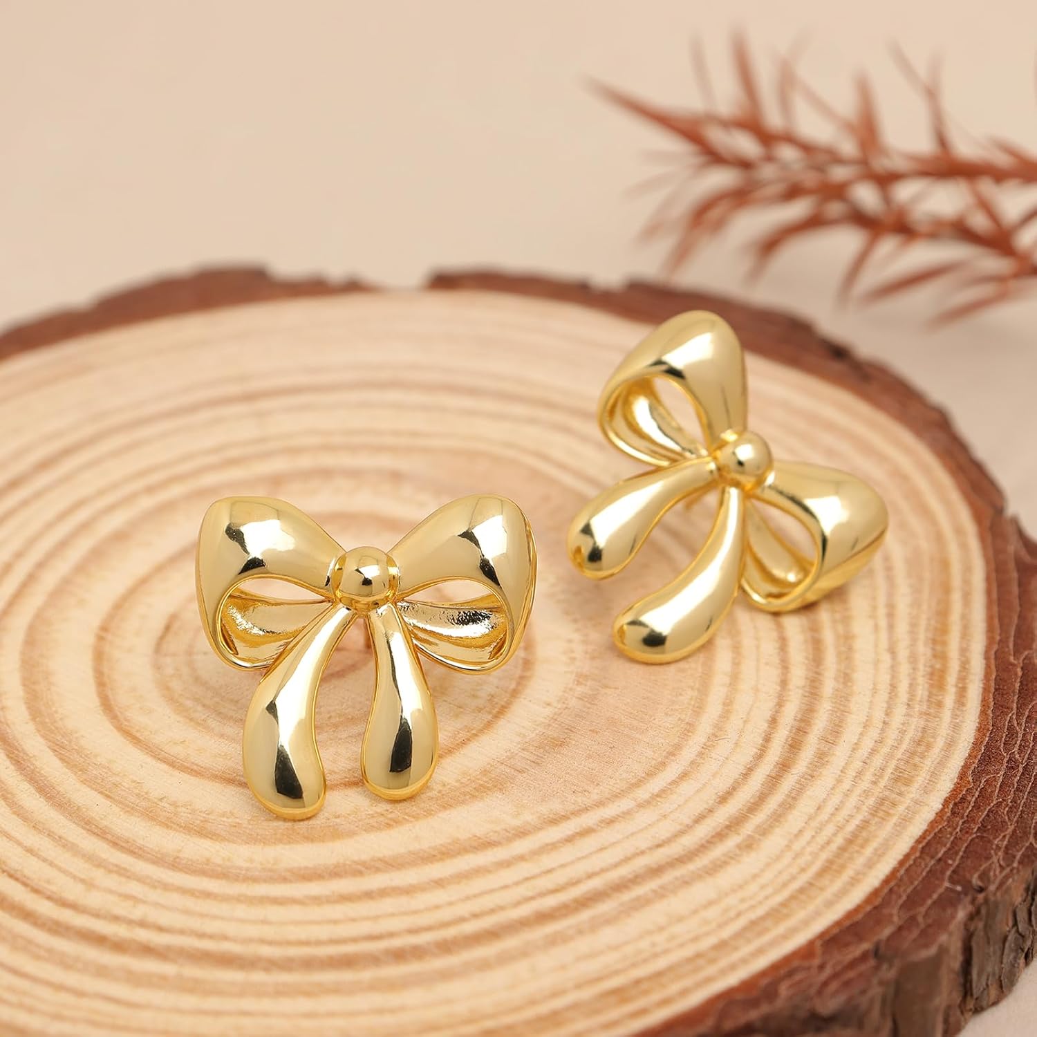 Chunky Bow Stud Earrings for Women Statement Trendy 14K Gold Plated Lightweight Ribbon Earings Everyday Fashion Jewelry Gift