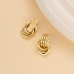 Double Knot Gold Earrings for Women Trendy Chunky Gold Earrings Triple Hoop Earrings Gold Twisted Link Earrings Gold Statement Earrings Gold Jewelry for Women Girls Gift