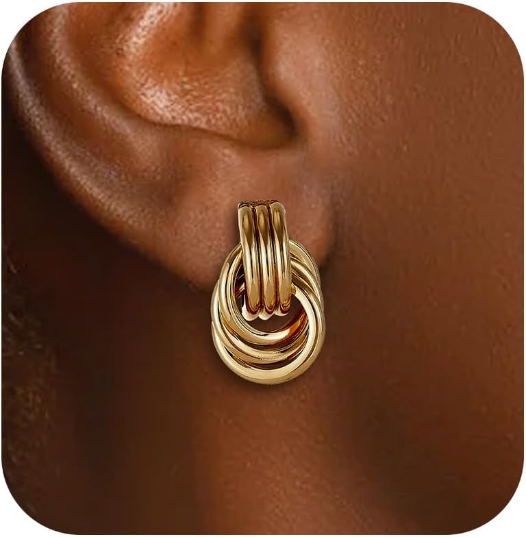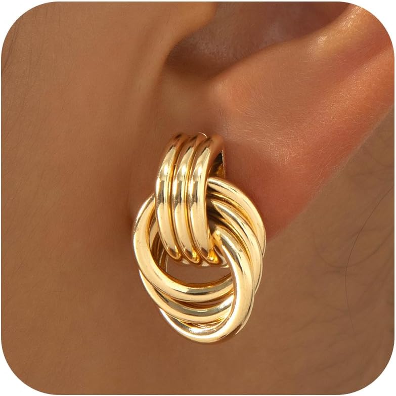 Chunky Gold Knot Earrings for Women Trendy Chunky Gold Hoop Earrings Gold Geometry Stud Earrings Gold Statement Earrings Lightweight Dainty Gold Jewelry for Women Gift