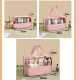 The toiletry bag can be used in checkrooms, bathrooms, gyms and on trips, where it can store toiletries, skincare products, cosmetics, medicines, electronic devices and clothing.