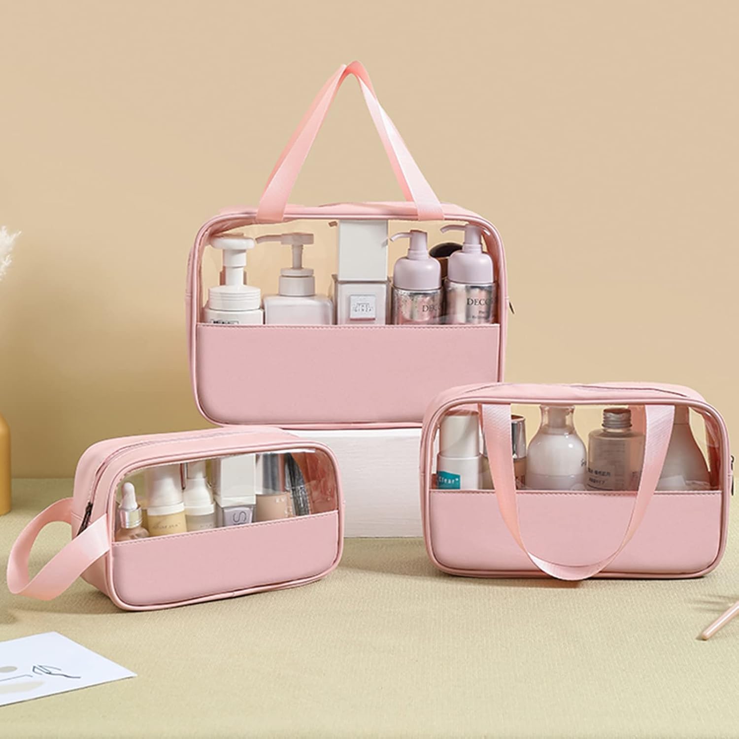 Be the first to review “Clear Toiletry Bag 3 pcs, Waterproof Wash Bags Set in PVC, Large Capacity Makeup Bag with Handle, Travel Cosmetic Bag for Men and Women (Pink)”