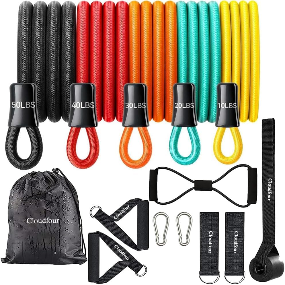 CLOUDFOUR Resistance Bands 12pcs set, Sports Workout Band, Exercise Band for Men & Women, Fitness Stretch Bands for Strength Training, Physical Therapy, Shape Body, Complete Home Workout Equipment