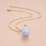 As a healing crystal necklace, blue lace agate is often associated with calmness and emotional balance, offering both style and a sense of serenity. This crystal pendant necklace highlights the raw beauty of nature, with its irregular shape adding a contemporary edge to its classic appeal.