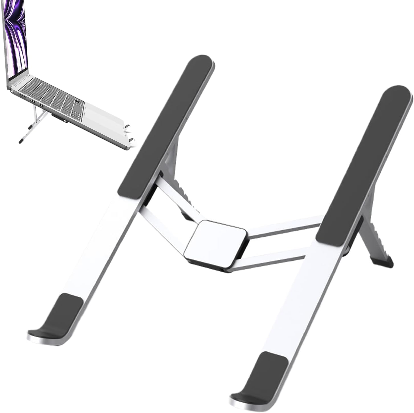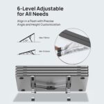 Easy to Carry: Featuring automatic lock stability and a foldable structure, this laptop stand is designed for seamless use across various settings, ensuring fast-deploy travel-ready functionality and slim-profile portability through its innovative integrating hinge folding system