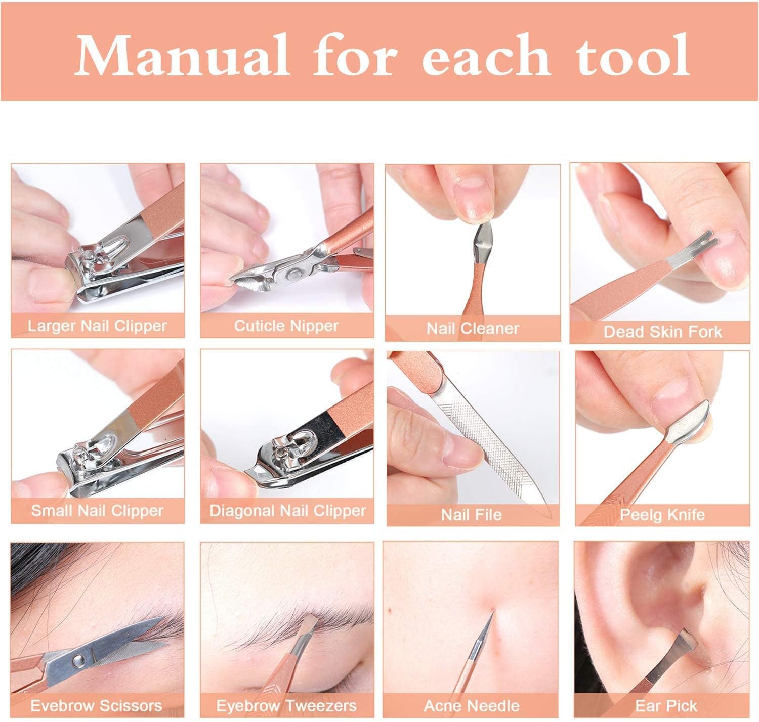 Conbo Women 12 In 1 Nail Clippers Set Manicure Pedicure Kit with Grooming Travel Leather (Rose Glod)