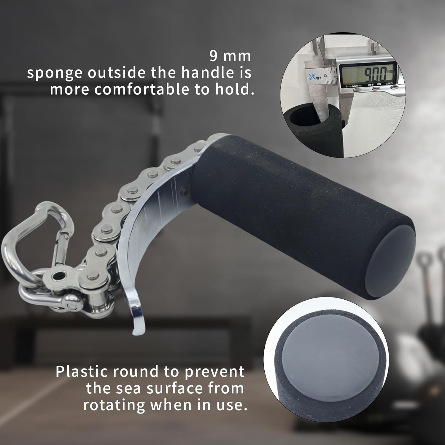 Material: Arm wrestling equipment chain is made of 304 stainless steel, the armwrestling handle is made of iron, and the outside is wrapped with sponge, which makes the grip tighter and more comfortable, and the round plastic bottom prevents the sponge from rotating when in use.