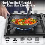 Even Heating: The nonstick cookware set features fast and even heat distribution; Hard anodized construction is more durable and corrosion-resistant; What’s more, it won’t react to acidic foods