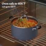 Works on Most Stovetops: The nonstick cookware set works on gas, electric, glass, ceramic, halogen, and more, but it’s not induction compatible; It’s oven safe up to 400℉, with the lid safe up to 350℉