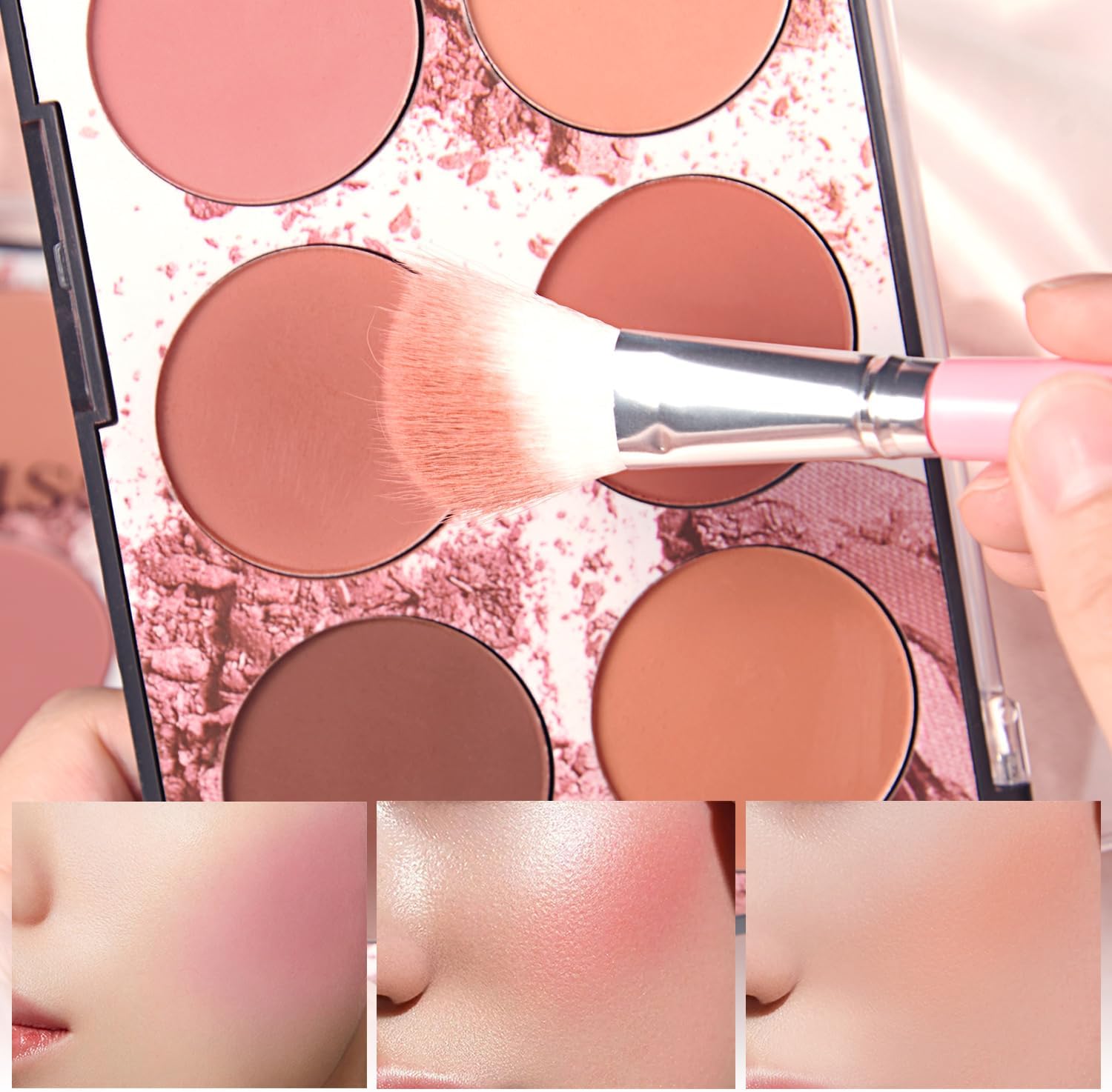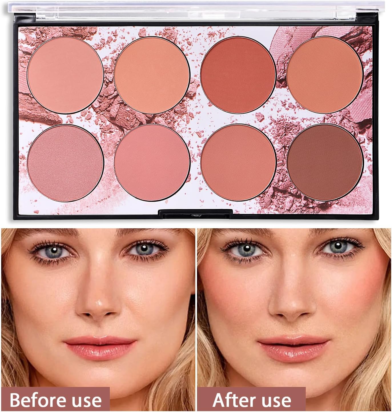 COOSA Blush Palette, Makeup 8 Color Contour and Highlight Blush Palette Matte Blush Powder Bright Shimmer Face Cosmetics Blusher Light Face Blush Palette with Blush Brush